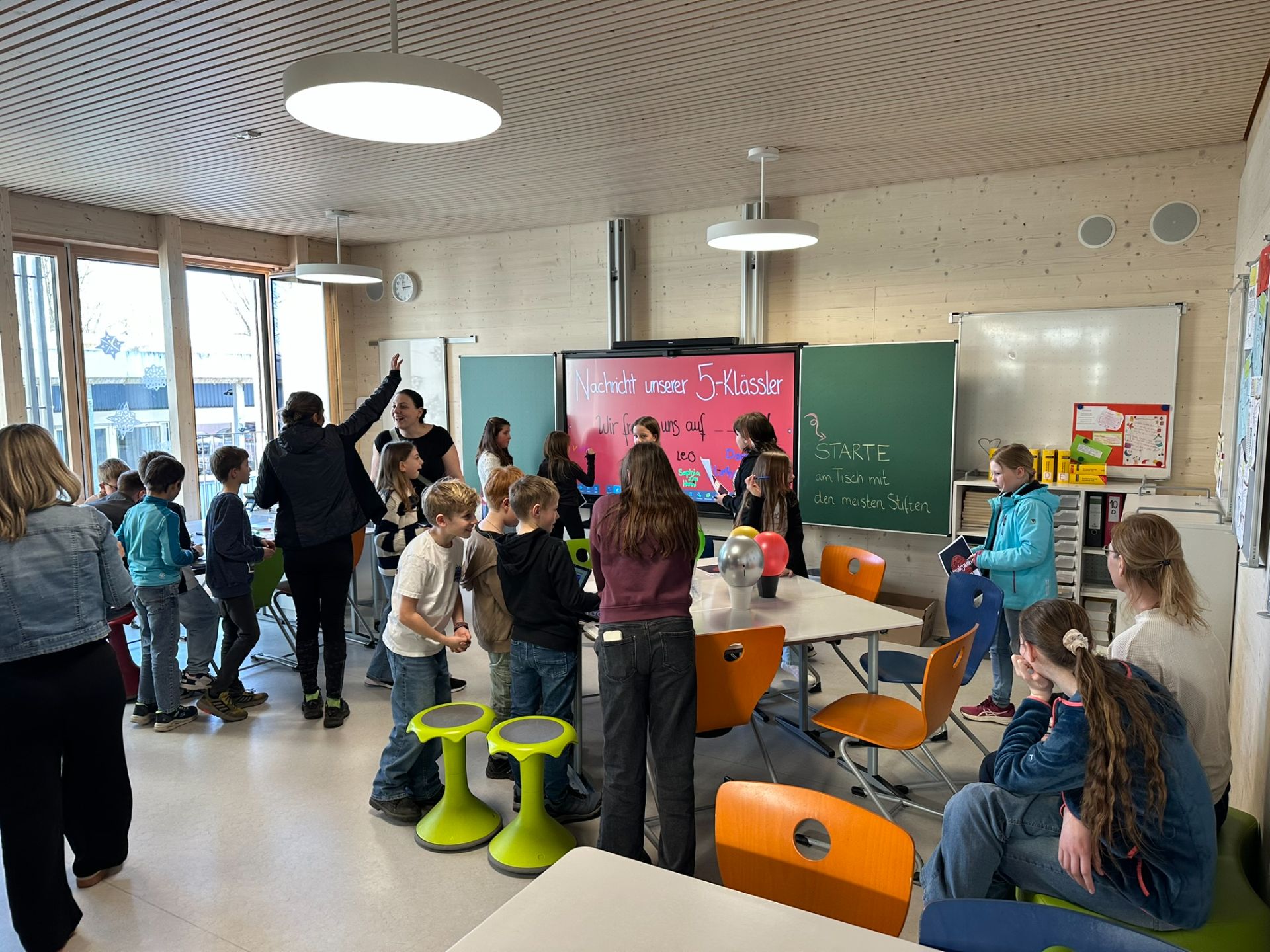 Empfangen wurden die Besucher im Grainersaal mit einer kurzen Begrüßung des Schulleiters und einer musikalischen Performance der Schulgruppe „Musik aktiv“. Danach stürzten sich die Besucher auf das umfangreiche Angebot an Aktivitäten im gesamten Schulhaus.