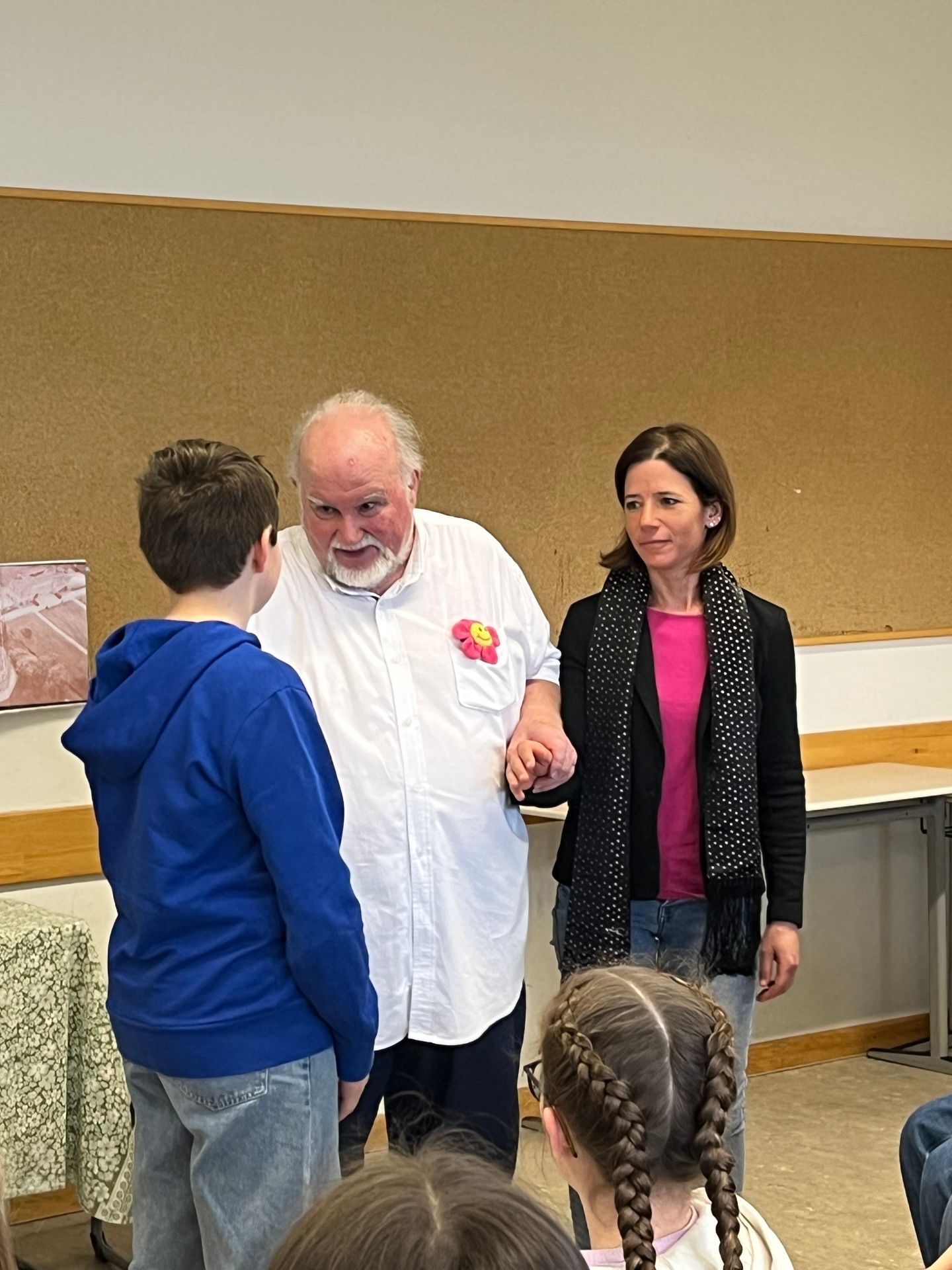 Der Besuch des berühmten Storytellers ist mittlerweile Tradition an der Realschule Simbach und die Schülerinnen und Schüler freuen sich immer sehr, wenn der gebürtige Schotte an der Klassenzimmertür steht und jeden mit einem Handschlag begrüßt.