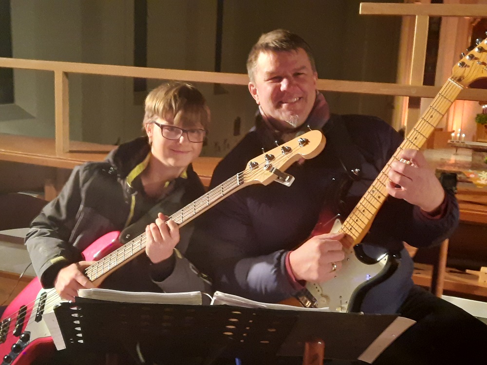 Die Firm-Kinder Sina (Keyboard) und Lukas (E-Bass) stießen nach der Nachmittagseinheit zur Band und brachten sich als Musiker ein. „Meine Schüler sind schon recht routiniert, weil wir häufig Abendgottesdienste musikalisch gestalten. Dabei spielen wir sicher und mit viel Freude!“, zeigte sich Bandleiter Bernhard Grundwürmer zufrieden.