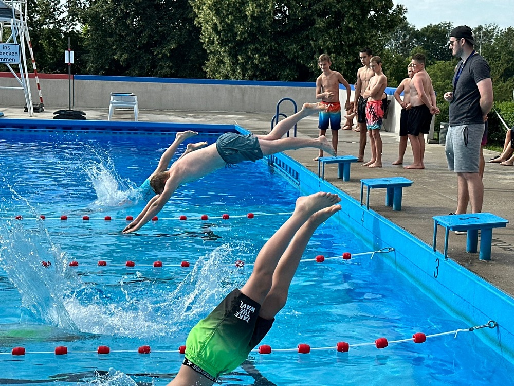 Schnell schwimmen zahlte sich wieder aus beim 14. Schwimmturnier in Simbach und die rund 200 Schulkinder können wahrlich stolz auf ihr Ergebnis sein. Dabei stand das große Sportereignis eigentlich fast auf der Kippe. Denn das Wetter mit grauen Wolken, aus denen auch vereinzelt Tröpfchen fielen, bot nicht die besten Voraussetzungen. Dennoch gab es bei den Kindern mit dem 24 Grad warmen Wasser keine Zurückhaltung, so dass bald nach deren Ankunft nicht nur die Liegewiese, sondern auch das Becken und der Sprungturm in Beschlag genommen wurden.
