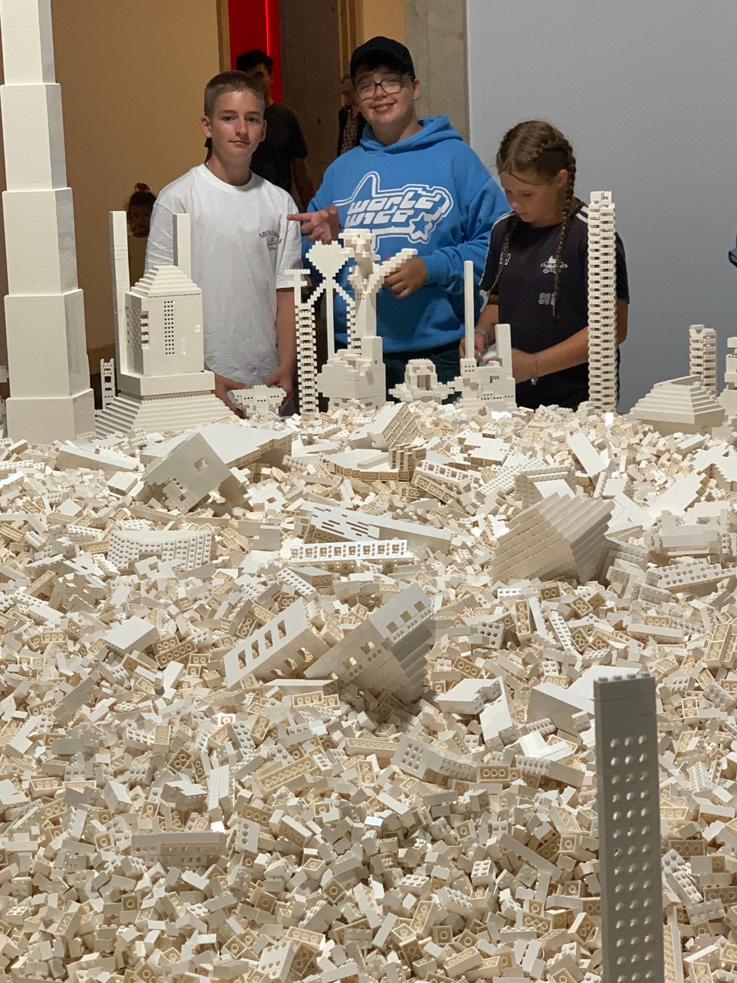 In den weiteren Räumen entdeckten die Schülerinnen und Schüler Kunstwerke, die auf spielerische Weise zum Nachdenken und Ausprobieren einluden: Spiegelräume, die spannende Perspektiven eröffneten, Objekte aus Alltagsgegenständen, die zum Staunen brachten, ein riesiges LEGO-Kunstwerk, das gemeinsam weitergebaut werden durfte, sowie ein ganz besonderes Bällebad, das Kunst und Bewegung miteinander verband. Auch experimentelle Kurzfilme und eine Tischtennisplatte mit ungewöhnlichen Hindernissen sorgten für viele Aha-Momente und jede Menge Spaß.
