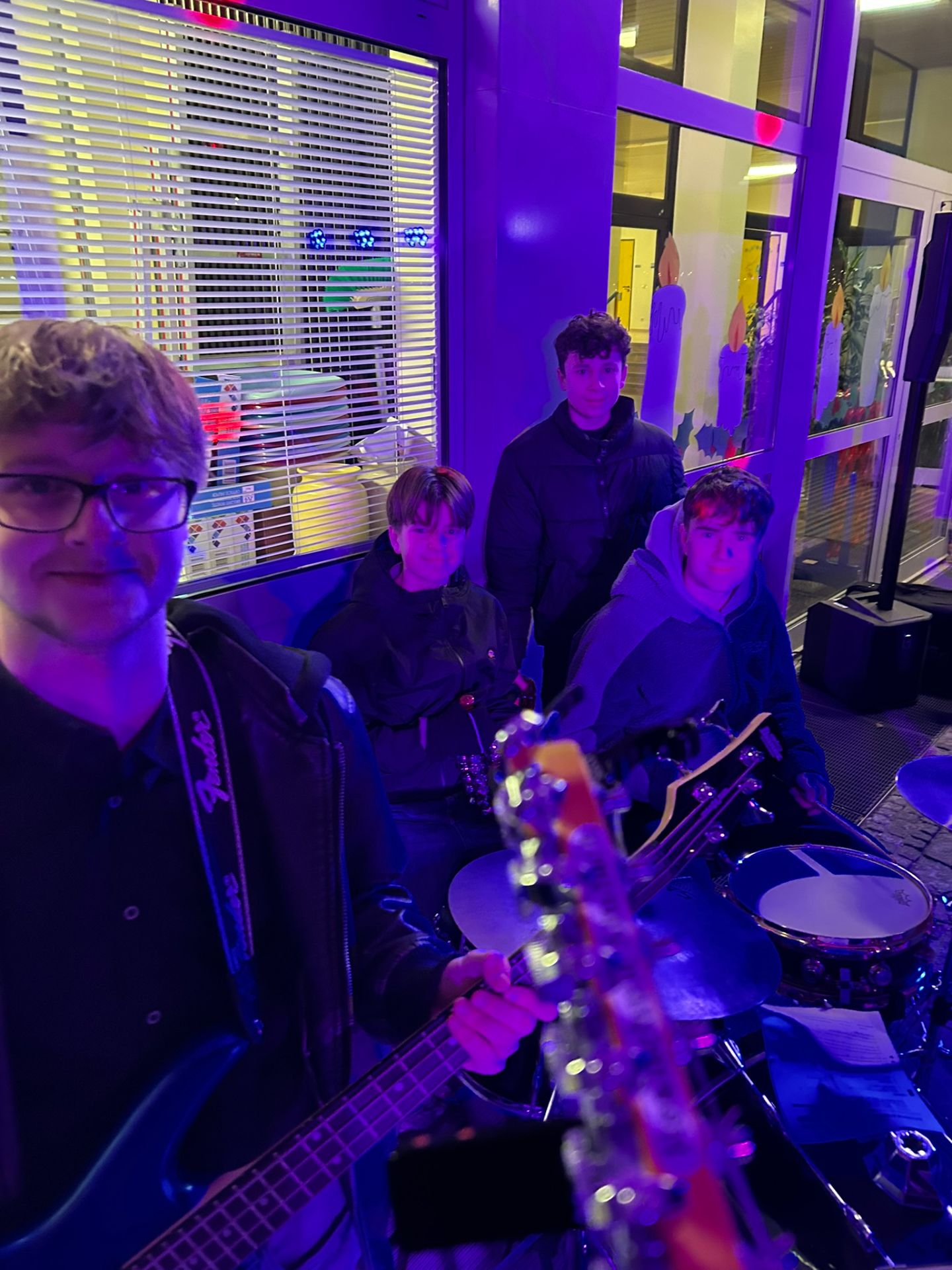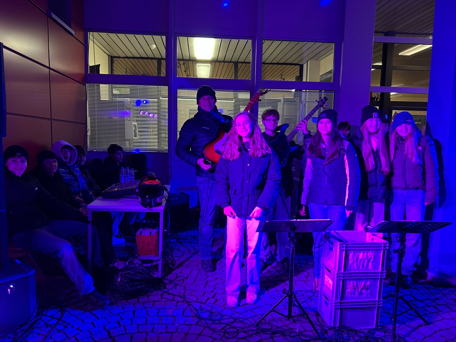 Drei Tage vor den Adventsferien waren die Schulband und das Technik-Team der Realschule nochmal schwer im Einsatz. Auf Einladung des Elternbeirates und des Fördervereins der Josef-Karl-Nerud Grundschule Simbach gestalteten die jungen Künstler den Advent im Schulhof musikalisch.