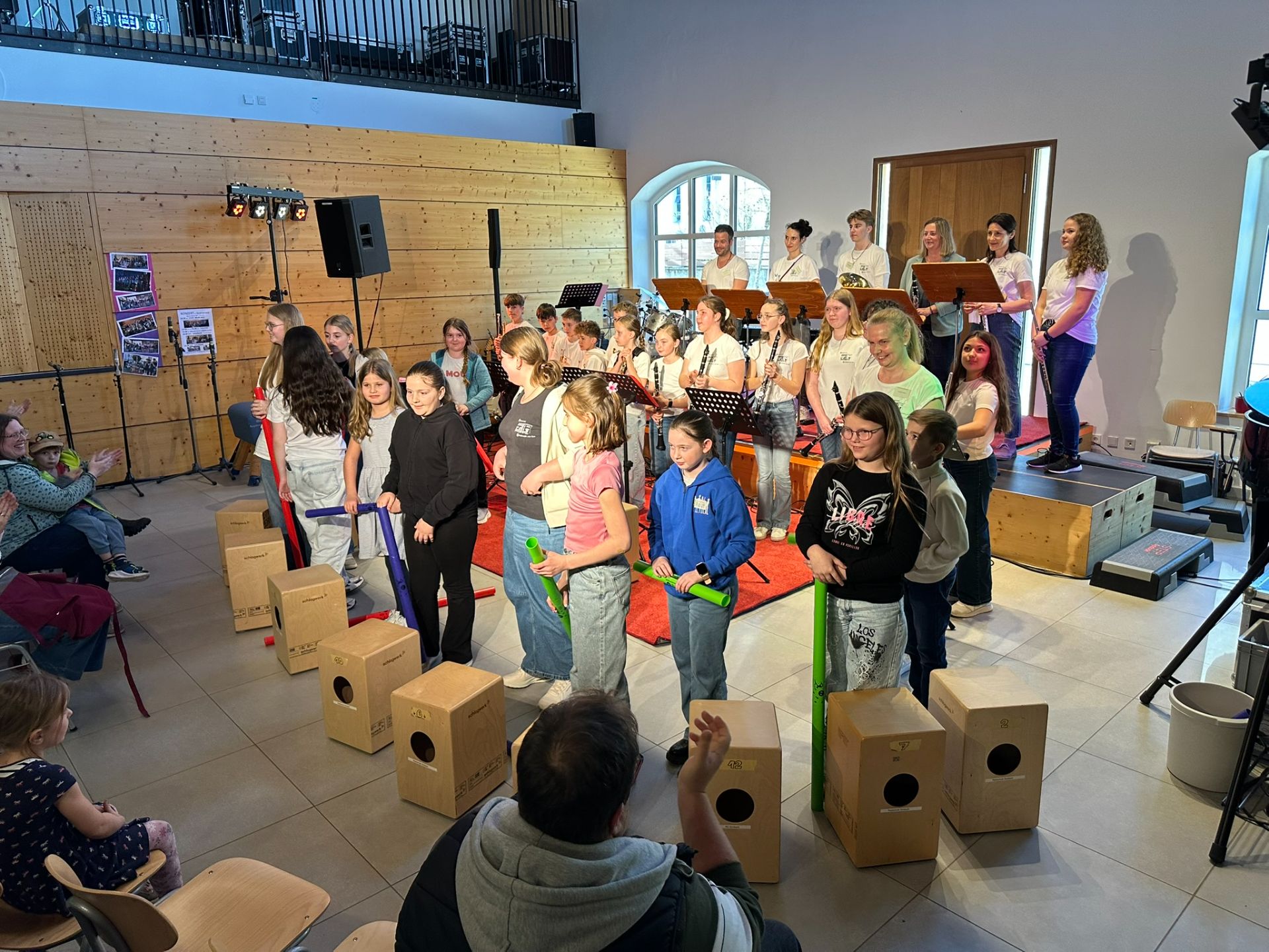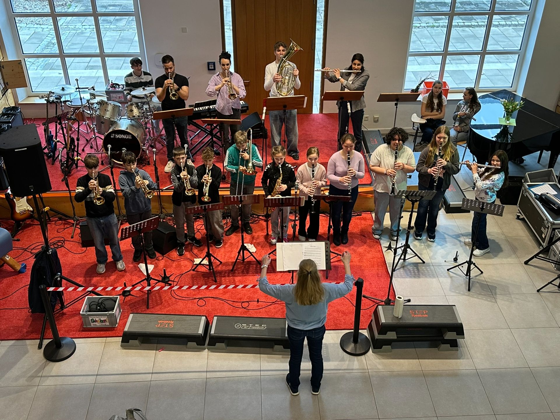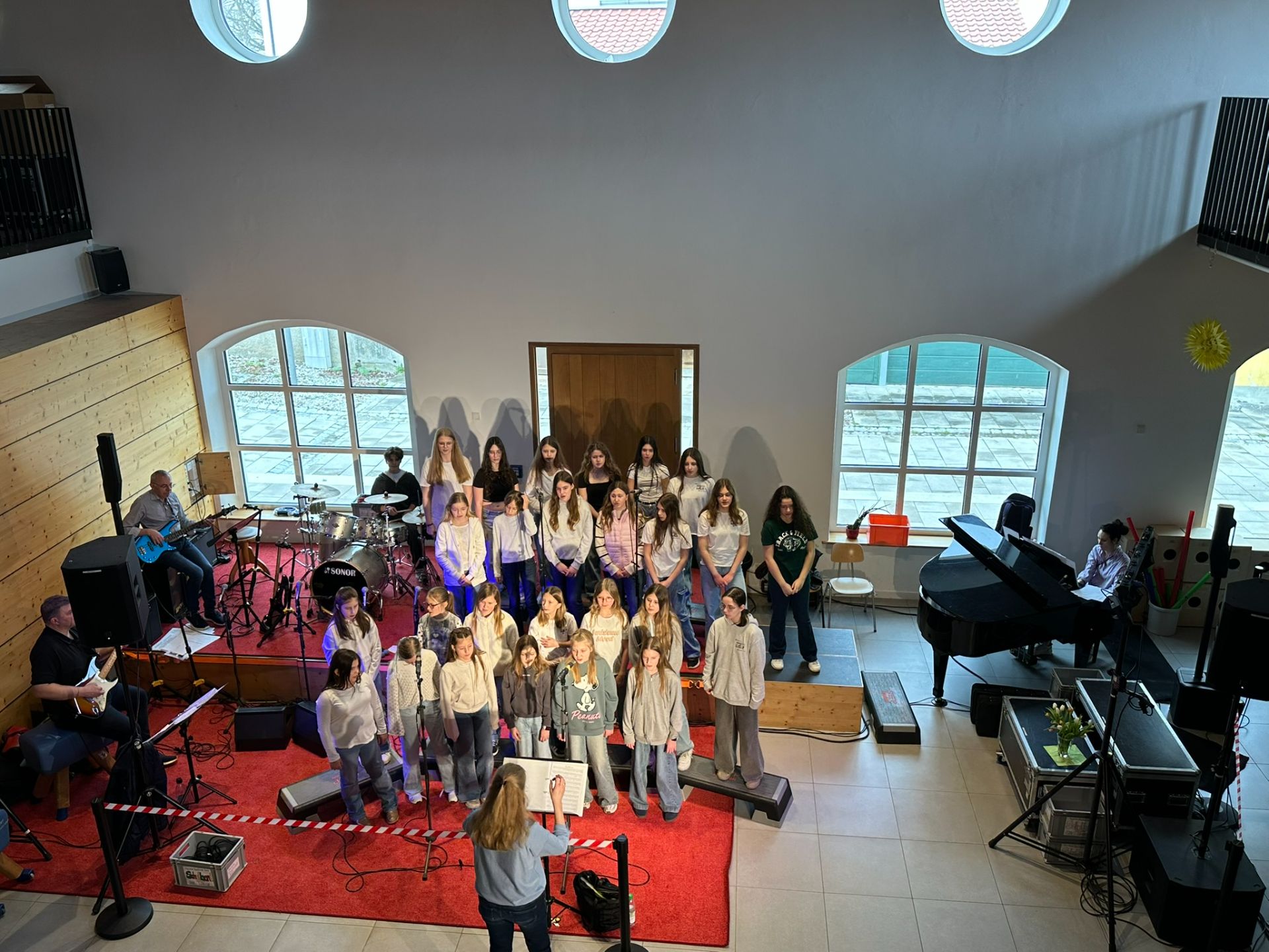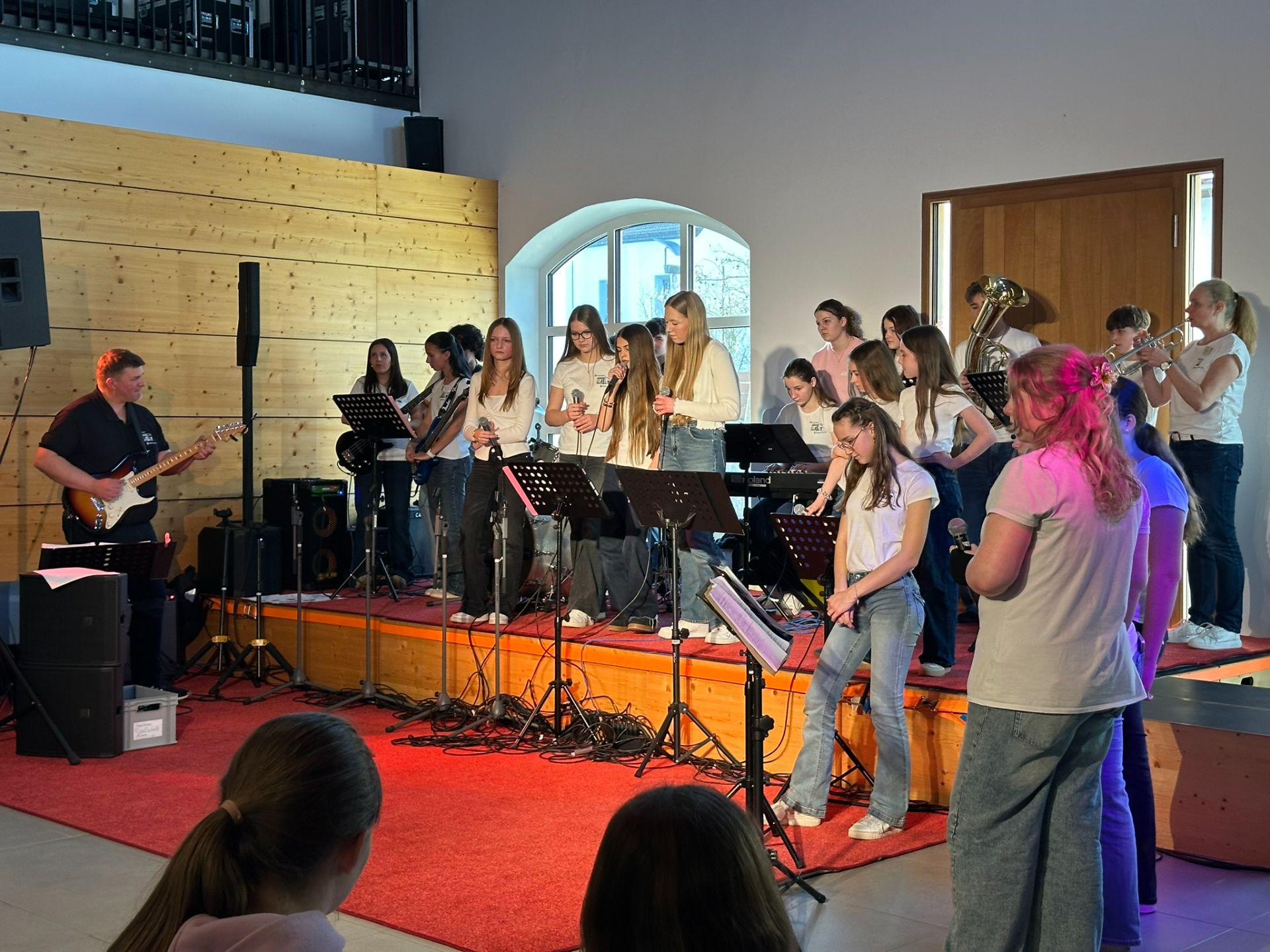 Es lohnte sich zwischendrin wieder in den Grainersaal zu schauen. Neben den weiteren musikalischen Aufführungen der Schulbands „Schludri-Wudri“, „The Real Band“, „Real Band Horns“ und dem Bläser-Ensemble sorgte auch der Theater-Sketch „28/7“ für Unterhaltung.