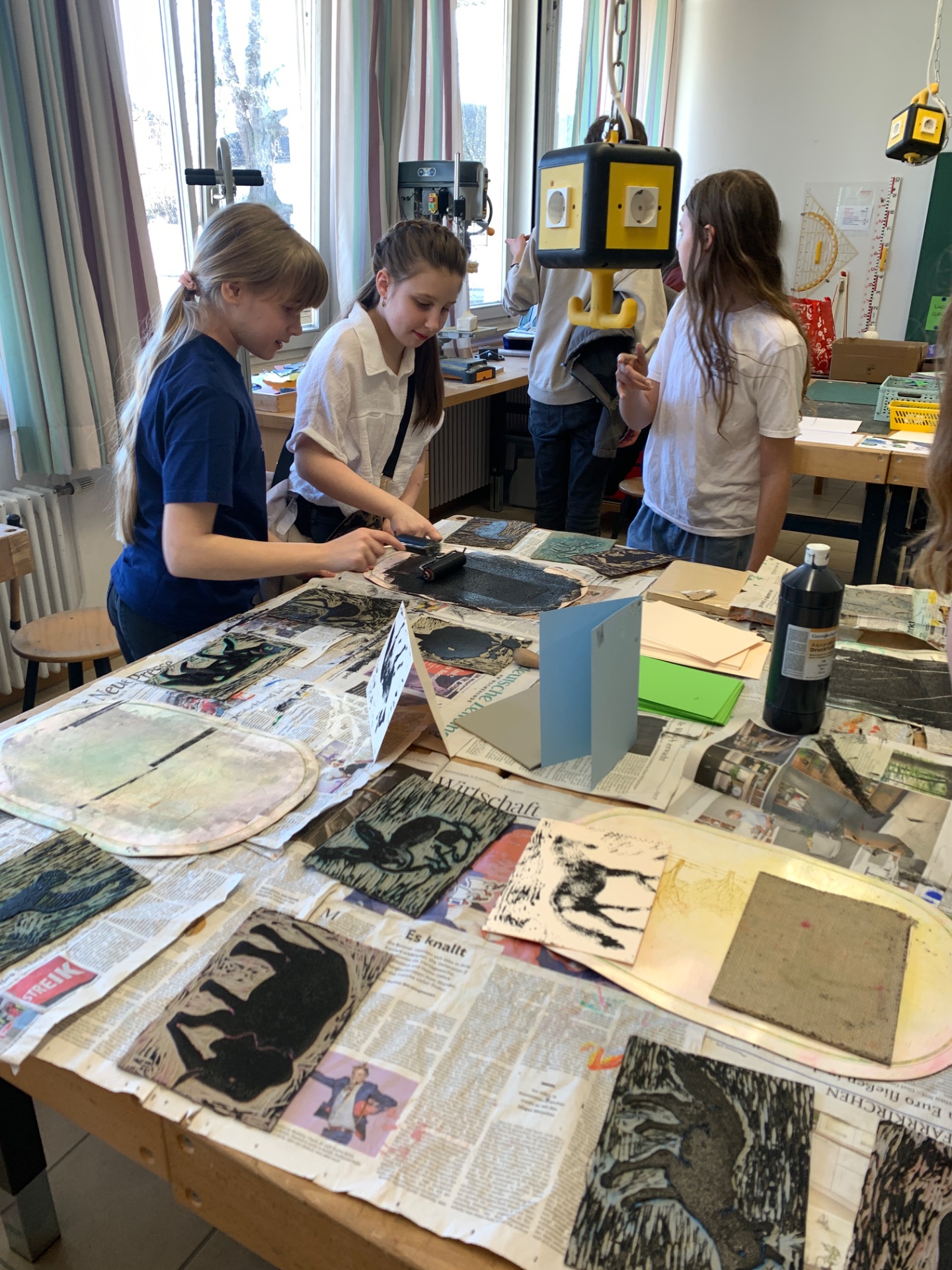 Eine Etage darüber ging das Angebot weiter im Wirtschaftsklassenzimmer. Hier konnte man auf Tablets prüfen, ob man KI-Bilder auf Anhieb erkennt. Das Fach Religion hatte eine Station aufgebaut, in der Steine zu den Themen Glück, Hoffnung, Glauben und Liebe angemalt werden sollten. Auch im Englischunterricht durfte Kreativität nicht fehlen. Hier setzten die Besucher ihre ganz eigenen englischsprachigen Kalender zusammen.